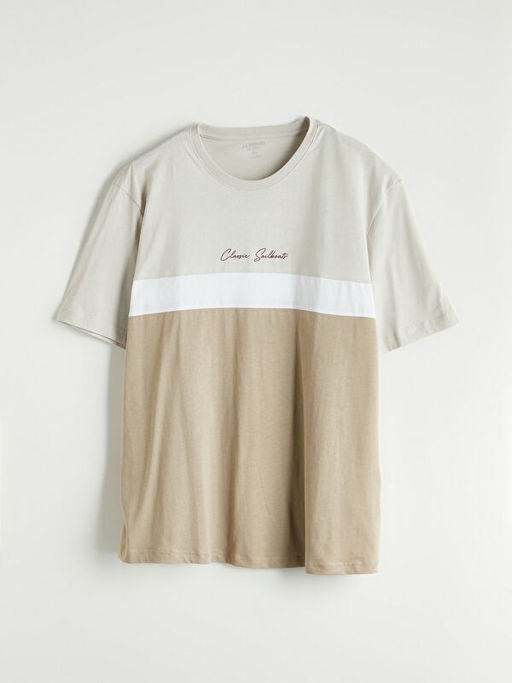 • Bisiklet Yaka Renk Bloklu Penye Erkek Ti??rt