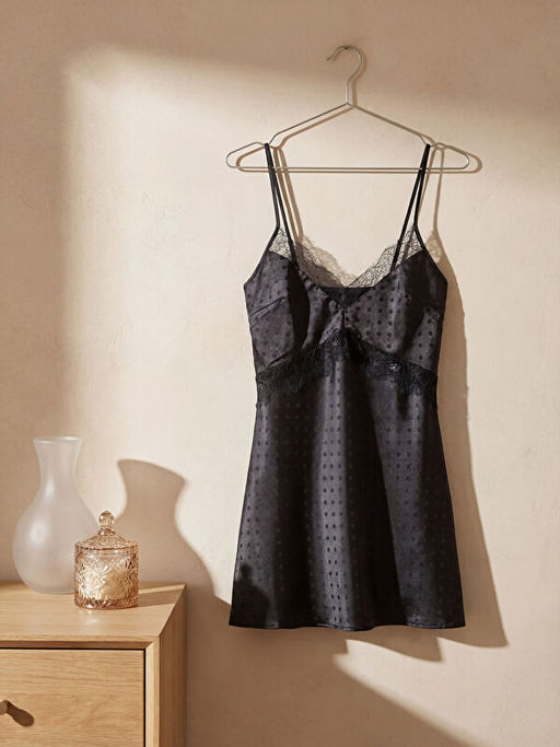 • V Yaka Puantiyeli Saten Kad?n Gecelik