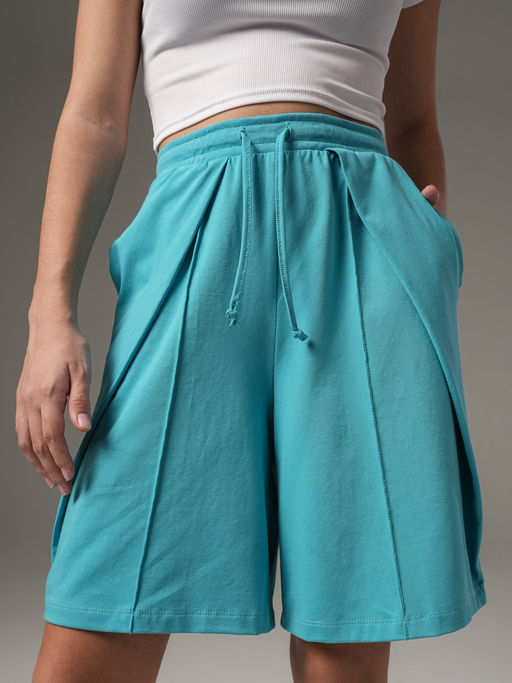 Шорты для девочки из крулирной глади с лайкрой. Прямые-широкие с наклонными складками и стрелками, карманы в швах, пояс на резинке, регулируется шнурком. Состав:92% хлопок, 8% лайкра