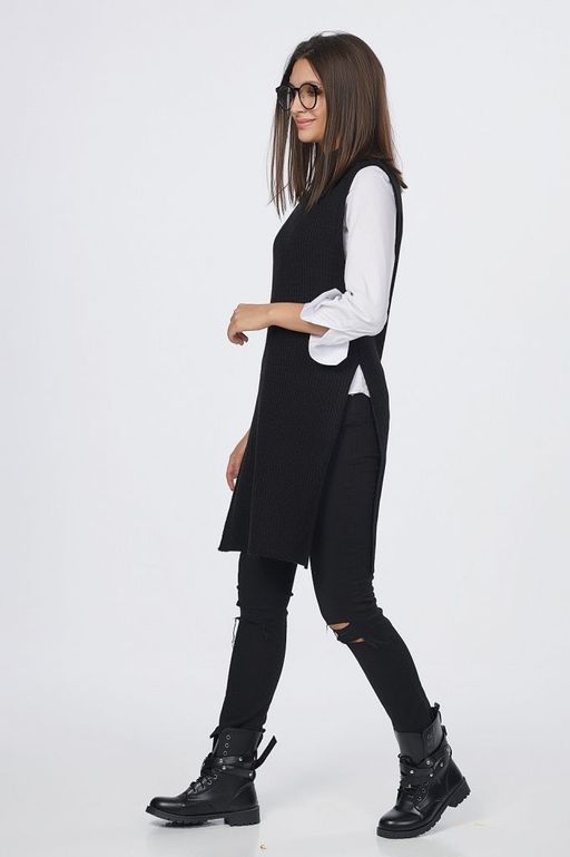 Жилет вязаный удлиненный с разрезами по бокам черный