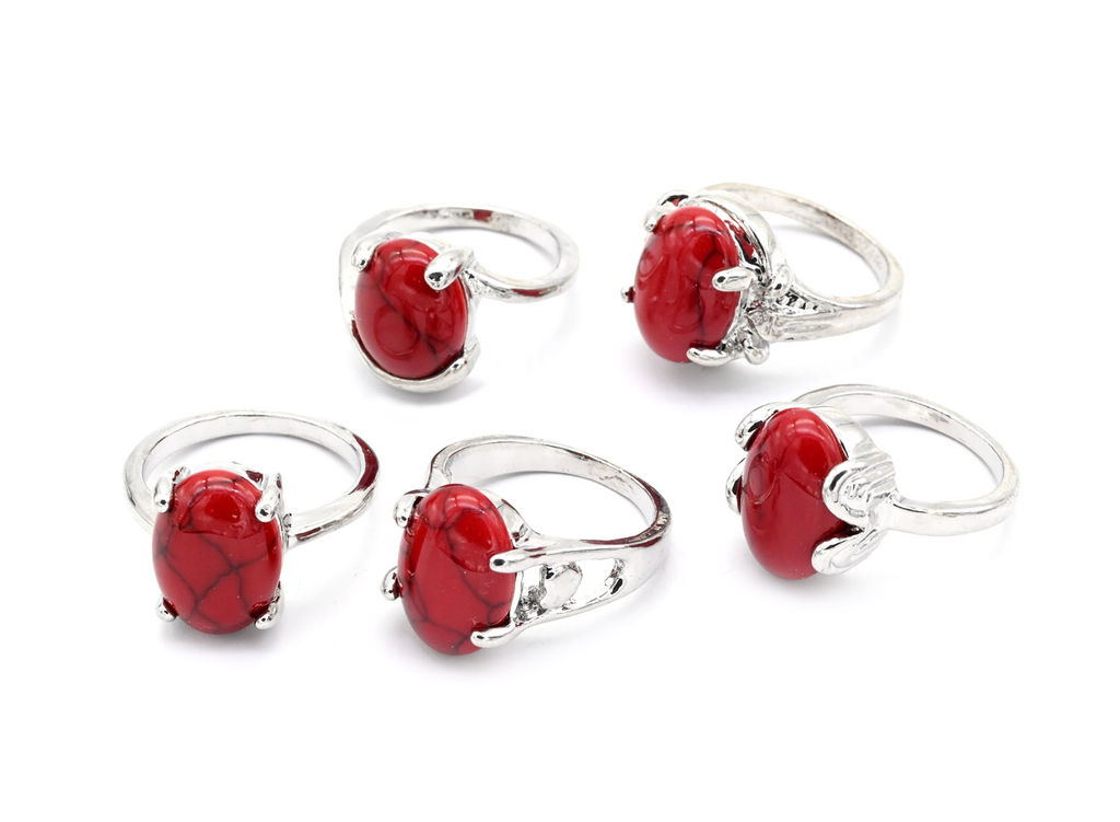 • Кольцо "Смайл" с кораллом (имитация), овал, размер 19 Радуга камня