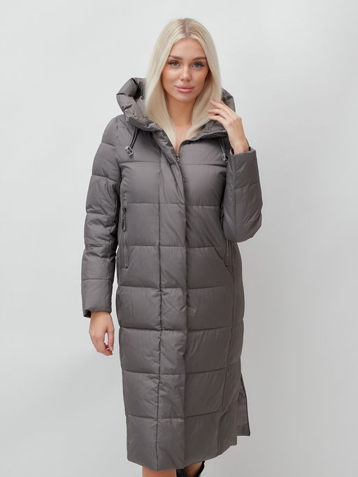 Название модели: Пальто утепленное стеганное зимнее с капюшоном женское темно-серого цвета 9606TC