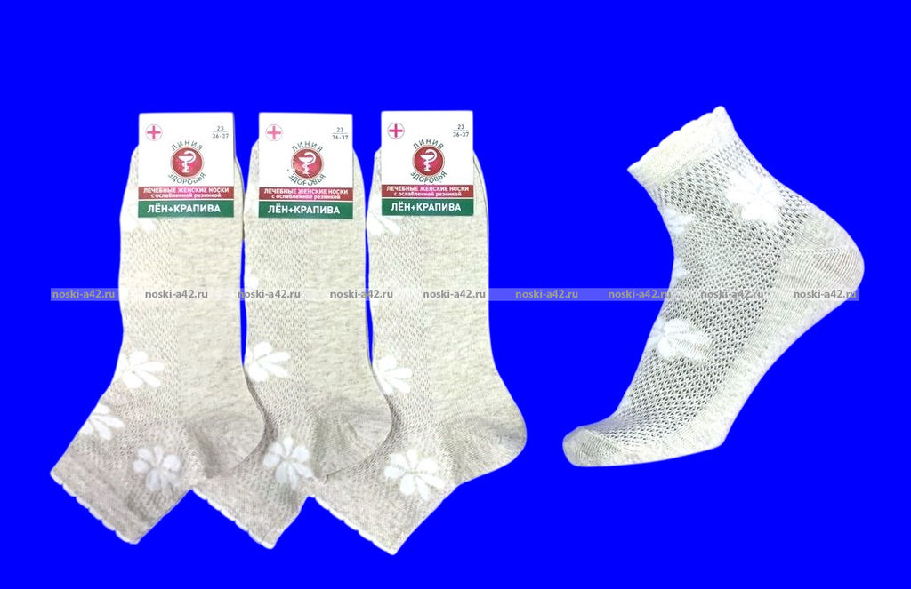 Цена за 10 пар. "Линия здоровья" носки женские лен СЕТКА с крапивой арт. Л-100