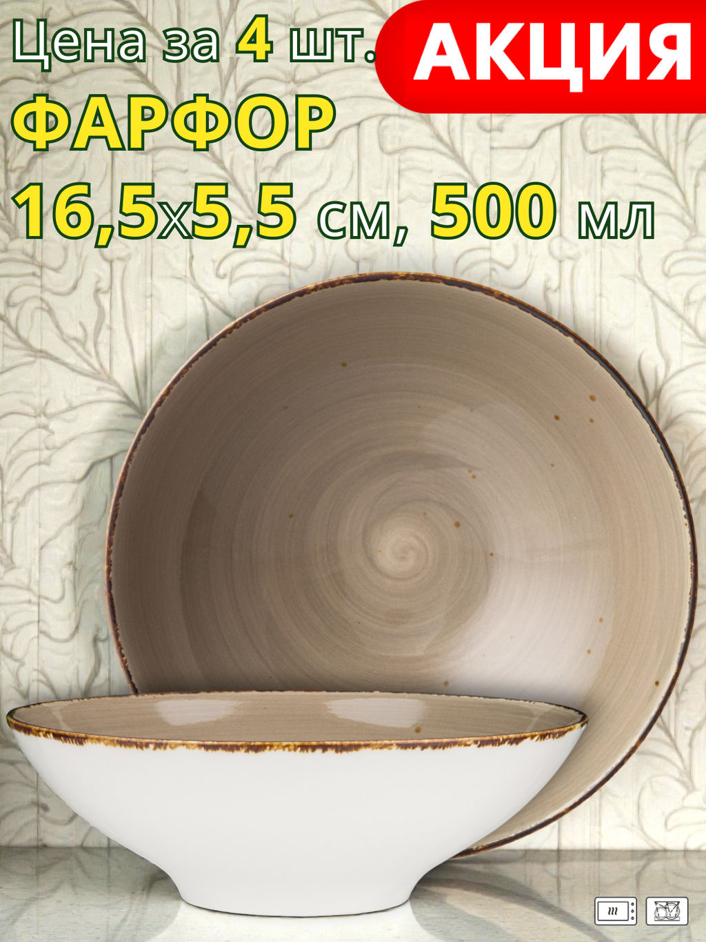 Цена за 4 шт. САЛАТНИК BRONCO NATURE 500МЛ 16,5*5,5СМ СЕРЫЙ