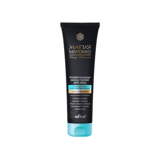 Маска-пилинг для лица, благодаря комплексу активных компонентов, оказывает преображающее действие на кожу: глубоко очищает, адсорбирует и выводит токсины, сужает поры, снимает маску усталости, освежает и выравнивает цвет лица.