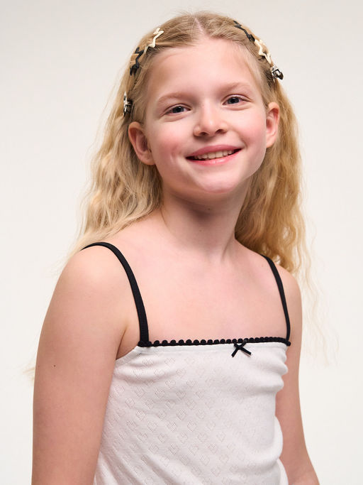 Топ для девочки базовый в бельевом стиле - незаменимая вещь в летнем гардеробе тинейджера, который следит за последними трендами моды! Майка на тонких бретелях выполнена из премиальной хлопковой ткани. Мы воплотили в ней все тенденции этого сезона: универсальный цвет, актуальный прилегающий крой выделят Вашего ребенка из толпы и подчеркнет его идентичность! Майка из легкого трикотажа с узором. Спереди бантик. Состав:100% хлопок