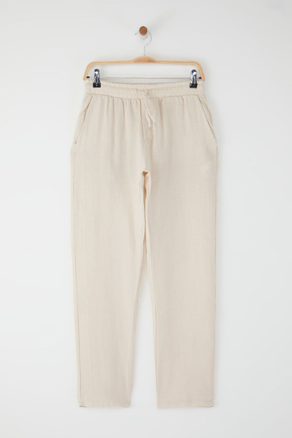 Tas Erkek Muslin Kumas Keten Gorunumlu Yazl?k Beli Lastikli %100 Pamuklu Pantolon TMNSS25PL00031