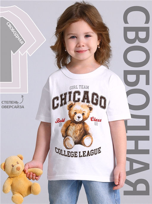 Уценка футболка,хлопок 100%,кулир / хлопок 100%,белый / - / Тедди и Чикаго / - / - / -,Футболка для девочки из кулира - легкого хлопкового полотна. Изделие с короткими рукавами со спущенным плечом, украшено печатью. Уход: только машинная стирка (руками не стирать!) при температуре 40 градусов, без предварительного замачивания. Изделия с печатью и декором перед стиркой необходимо вывернуть на изнаночную сторону.
