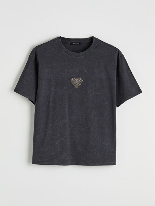 Kalp ??lemeli Oversize Kad?n Ti??rt