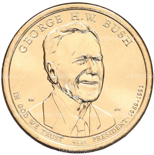 Монета 1 доллар 2020 года (D) США 41-й президент США Джордж Герберт Уокер Буш