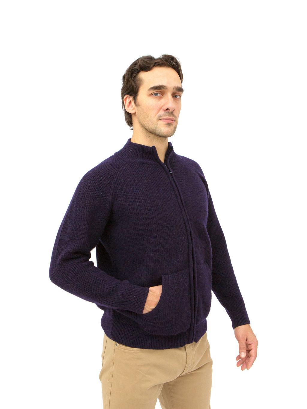 Мужской кардиган классического кроя, выполненный из натуральной шерсти. Лаконичный дизайн и глубокий темно-синий цвет делают модель универсальной для повседневного и делового гардероба. Материал: Натуральная шерсть теплая, дышащая и износостойкая, обеспечивает комфорт в прохладную погоду и хорошо сохраняет форму. Фасон и посадка: Прямой силуэт с аккуратной посадкой по фигуре. Кардиган не сковывает движения и подходит для многослойных образов. Детали: Застежка на молнию по всей длине, удобные боковые карманы, воротник-стойка, эластичные манжеты и нижний край для дополнительного комфорта. Цвет: Темно-синий практичный и универсальный оттенок, легко сочетается с брюками, джинсами и рубашками. Сезонность: Осень, зима, прохладная весна. Уход: Рекомендуется бережная стирка или химчистка, сушка в разложенном виде для сохранения формы и структуры изделия. -- Характеристики -- Состав: 100% шерсть Размер на модели: ХL Рисунок: нет Сезон: осень, зима, весна, лето Стиль: кэжуал, повседневный, домашний Тип ткани: шерсть Подклад: нет Детали: карманы, молния, воротник Длина изделия: стандарная Модель: джемпер на молнии с карманами