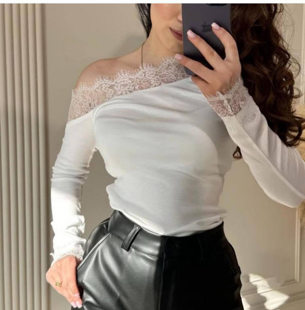 • K13375 Лонгслив с кружевом БЕЛЫЙ