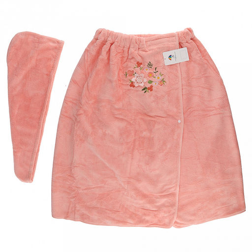• Парео махровое "Свежий букет" 70х175см, хлопок 100%, на резинке с липучкой, на кнопке, с вышивкой; с чалмой на пуговице 68х25см, розовый (Китай)