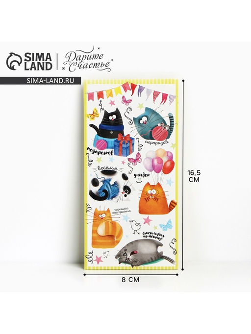 • Цена за 10 шт. Конверт для денег «Котики», 16.5×8 см