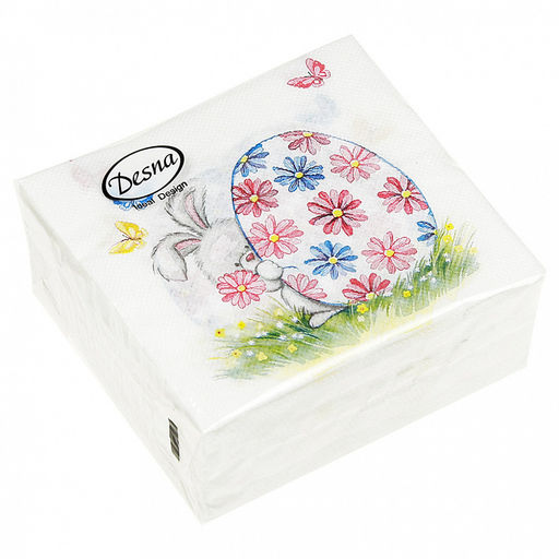 Салфетки бумажные "Desna Design" 24х24см, 1 слойные, 40 штук в упаковке, 100% целлюлоза, "Пасхальный подарок" (Россия)