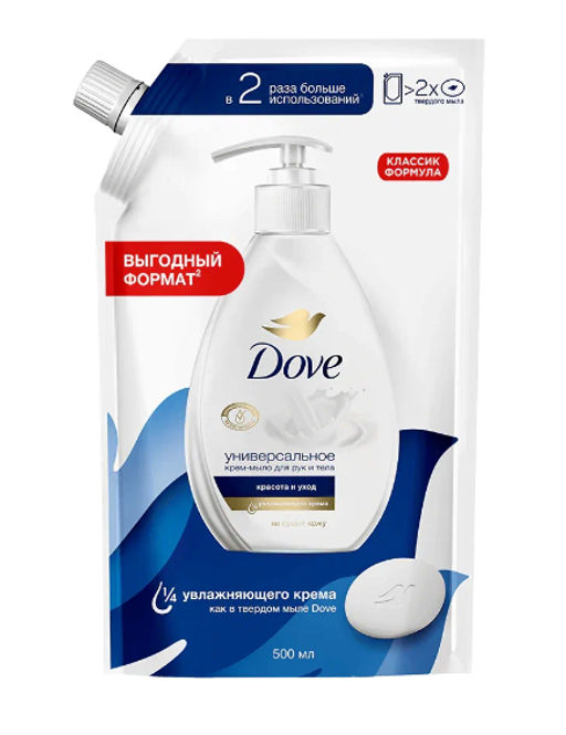 Жидкое крем-мыло Dove Красота и уход содержит 1/4 увлажняющего крема, очищает за секунды и питает в течение 24 часов. Увлажняющая формула крем-мыла с pH уровнем, нейтральным к коже, обеспечивает бережное очищение кожи рук от загрязнений. Крем-мыло от Dove подарит коже рук ощущение комфорта и увлажнённости. Ваша кожа станет более нежной, гладкой и красивой. Это мягкое очищающее средство, которое сокращает вероятность появления раздражения или сухости кожи рук, поэтому оно станет идеальным дополнением к косметическим средствам, которыми вы пользуетесь ежедневно.