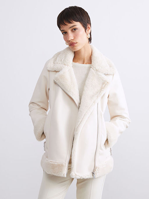 • K?rkl? Yaka Kad?n Deri G?r?n?ml? Mont