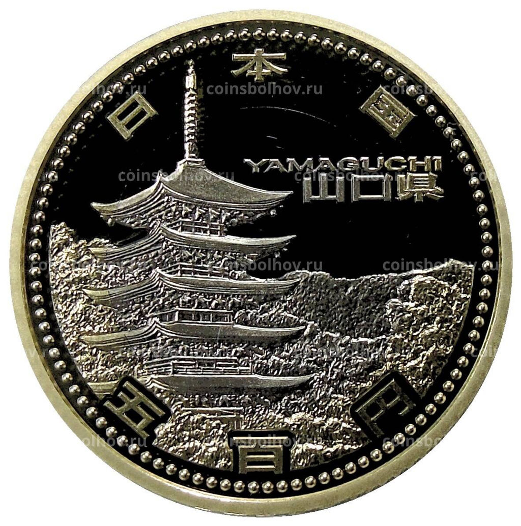 Монета 500 йен 2015 года Япония 47 префектур Японии Ямагути (в коробке)