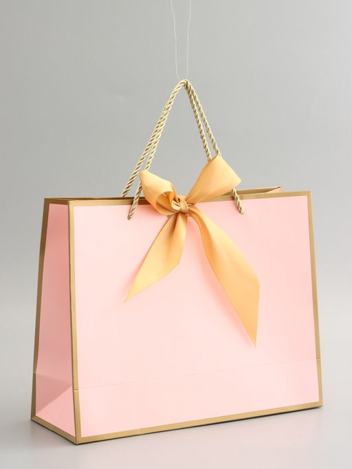 • Пакет подарочный, розовый , с бантом, 32 х 25 х 11 см