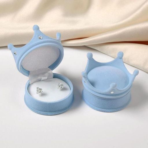 • Футляр под серьги, кулон, кольцо Корона, бархатный, 5.5?5.5?4.5 см, голубой