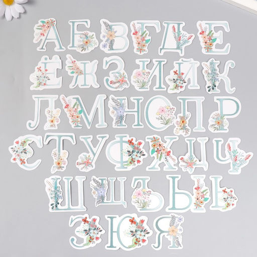 • Наклейки для творчества Цветочный алфавит, тиснение серебро, набор 33 шт., 9?7?0.8 см