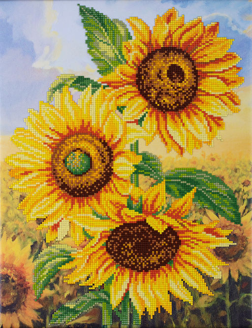 Кристальная (алмазная) мозаика ФРЕЯ ALPD-090 на подрамнике Подсолнухи на закате 30 х 40 см