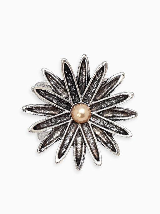 Кольцо для платка «Цветок Астра», белое в чернёном серебре