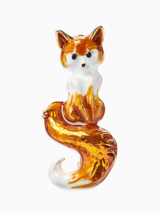 • Брошь «Лиса» с хвостиком, цвет бело-оранжевый в золоте