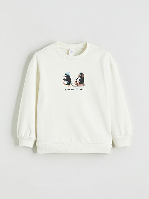 Bask?l? Erkek ?ocuk Kal?n Sweatshirt
