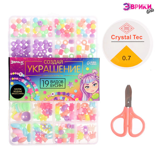 Набор для творчества Создай своё украшение идеальное решение для занятия творчеством! Яркие бусины разных цветов и размеров позволят воплотить самые разные идеи.