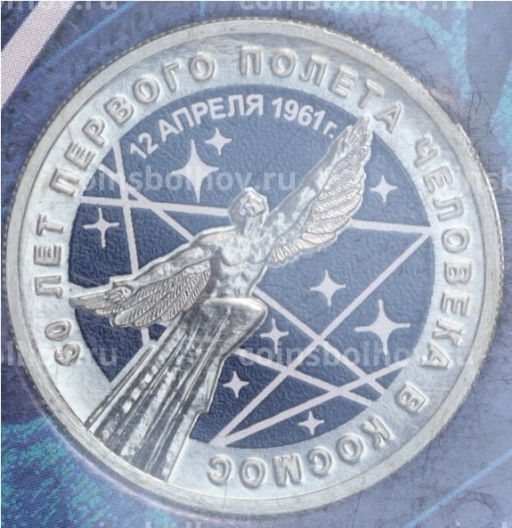 • Монета 25 рублей 2021 года ММД 60 лет первого полета человека в космос (Цветная, в блистере)