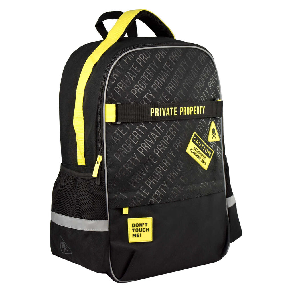 Рюкзак школьный Феникс+ арт.64512/ 14 ЧАСТНАЯ СОБСТВЕННОСТЬ (27x41x16 см, полиэстер, декоративный элемент из репсовой ленты, резиновые нашивки, шелкография, 1 отделение (-я), молния, тип спинки: уплотнённая спинка, тип дна: с пластиковыми ножками, ПЭТ-пакет с ручкой)