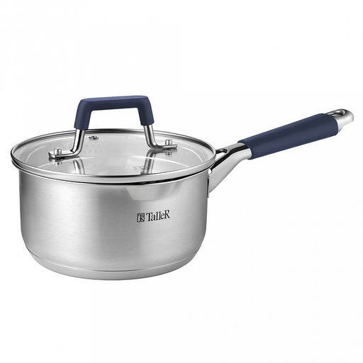 Ковш из нержавеющей стали "Ковентри" 1,6л, s0,6мм, дно s2,8мм, стеклянная жаропрочная крышка, обод крышки с перфорацией, ручки с силиконовыми вставками, цветная коробка, "TalleR" (Китай)