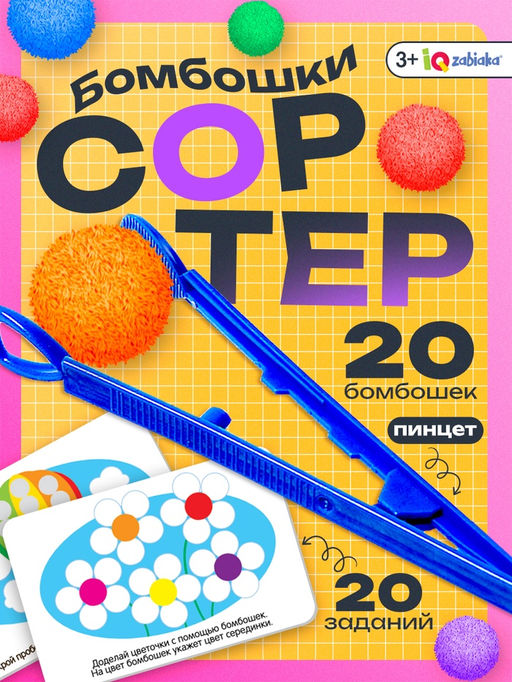 • Развивающий набор «Цветные бомбошки: по методике Монтессори», 20 шариков, 20 заданий, 3+