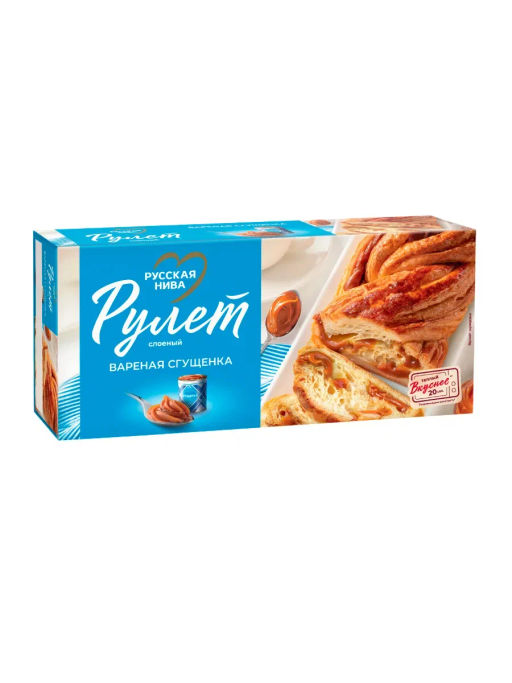 Рулет слоеный с вареной сгущенкой от "РУССКАЯ НИВА" - это вкусный и удобный десерт, который станет отличным дополнением к чаю или кофе. Нежный слоеный рулет с ароматной начинкой из вареной сгущенки придется по вкусу как взрослым, так и детям.