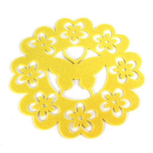 Салфетка под горячее (сервировочная) "Бабочка" д32см фетр, цвет - желтый (Китай)