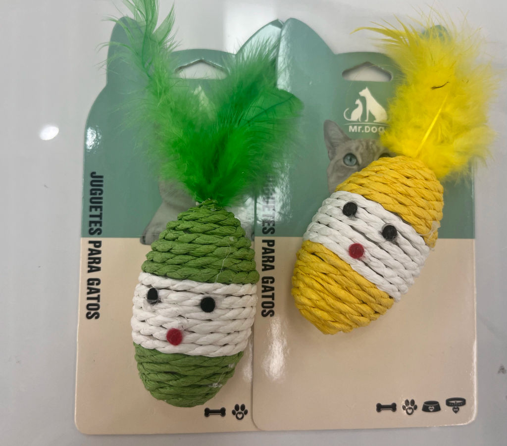 Игрушка - мячик для кошек "ИГРУЛИК", с перышками, цвет зеленый и желтый, 16,5*8*4,5см­