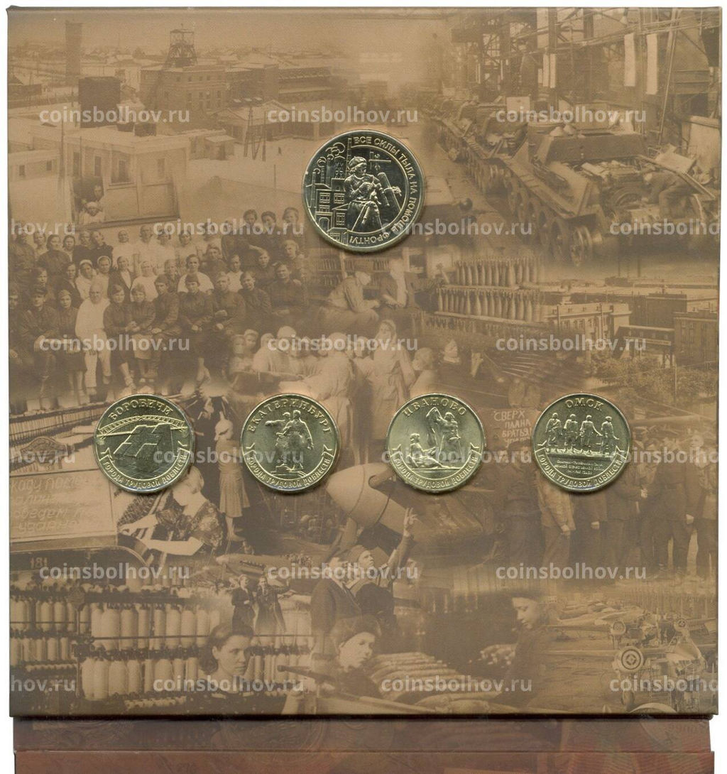 • Набор из 4 монет 10 рублей 2021 года ММД Города Трудовой Доблести (В буклете с жетоном)