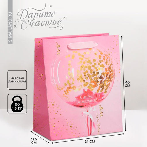 Для кого: Унисекс. Плотность, г/м²: 190. Допустимый вес вложения, г: 1500. Тематика: Шары. Рисунок: Да. Символ года: Нет. Тематика праздника: День рождения. Отделка пакета: Ламинация. Вид ручки: Ручка-лента. Форма пакета: Вертикальный. Особенности: Без особенностей. Бесплатная доставка: Да. Наша разработка: Да. Размеры товара: 11.5/31/40.