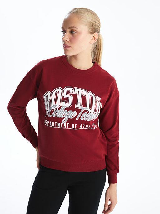 Bisiklet Yaka Bask?l? Kad?n Sweatshirt