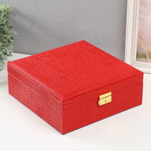 • Шкатулка для украшений и часов 2 отделения «Кожа крокодила», искусственная кожа, красная, 26×26.5×10 см