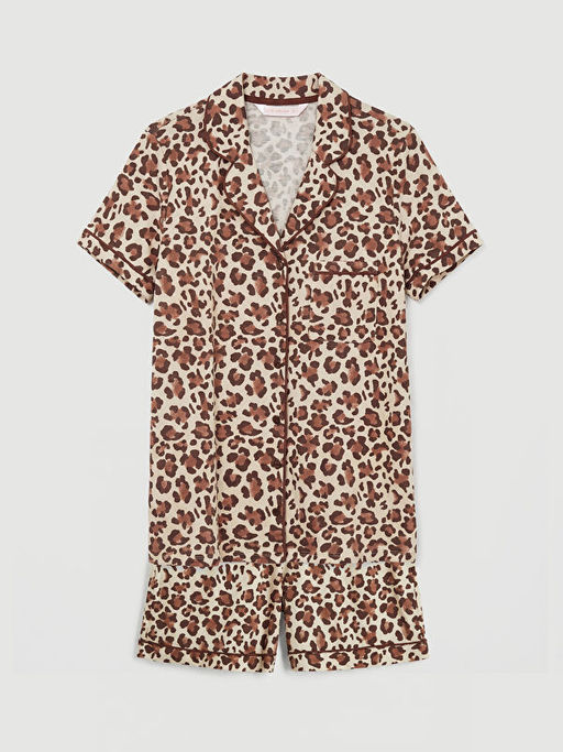 Leopar Desenli Kad?n ?ortlu Pijama Tak?m?