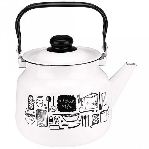 • "Kitchen" Чайник эмалированный 3,5л, металлическая крышка, подвижная металлическая ручка, белый (Россия)