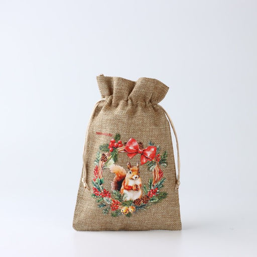 Цена за 5 шт. Мешочек подарочный с термонаклейкой «Новогодний венок», 16 х 24 см +/- 1.5 см