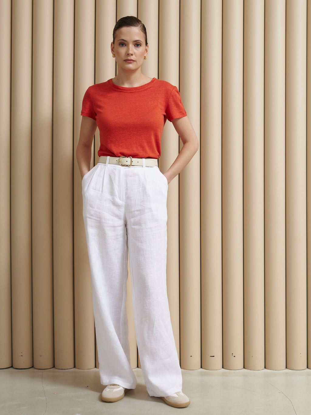 Эта льняная футболка кораллового цвета отличный выбор для тех, кто ценит комфорт и стиль в жаркое время года. Изготовленная из натурального льна, она обеспечивает превосходную воздухопроницаемость и легкость, позволяя коже дышать и поддерживая ощущение свежести в течение всего дня. Лён известен своими гипоаллергенными и влагоотводящими свойствами, что делает эту футболку идеальной для теплого сезона.