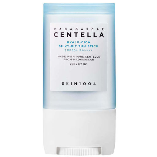 Солнцезащитный стик с шёлковым финишем SKIN1004 Hyalu-Cica Silky-Fit Sun Stick SPF50+ PA++++ обеспечивает максимальную защиту от ультрафиолета, предотвращает покраснение, солнечные ожоги, пигментацию и появление признаков фотостарения. Средство быстро и гигиенично наносится, отлично подходит для обновления защитного слоя и для использования в дороге. Имеет лёгкую текстуру, не провоцирует выделение жирного блеска. Подходит для лица и для тела. Содержит фотостабильные химические УФ-фильтры нового поколения, комплекс Hyalu-Cica из гиалуроновой кислоты и центеллы, а также экстракты алоэ, дерева ним, баклажана, зелёного чая, кофе и водорослей, масло жожоба