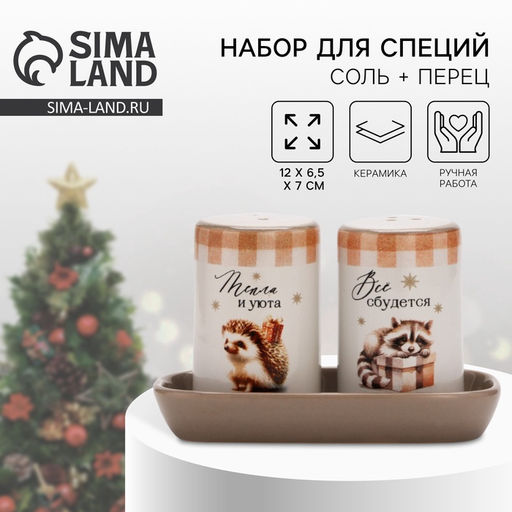 Солонка и перечница новогодние «Зимние зверята», 12×6.5×7 см, ручная работа