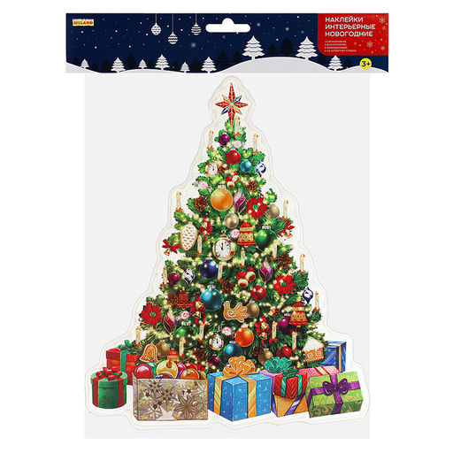 • Силиконовая новогодняя наклейка "Ёлочка с подарками" 20*25см.
