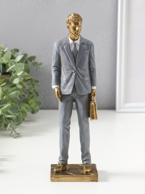 • Сувенир полистоун "Мужчина-адвокат в сером костюме с портфелем" 24,5 см