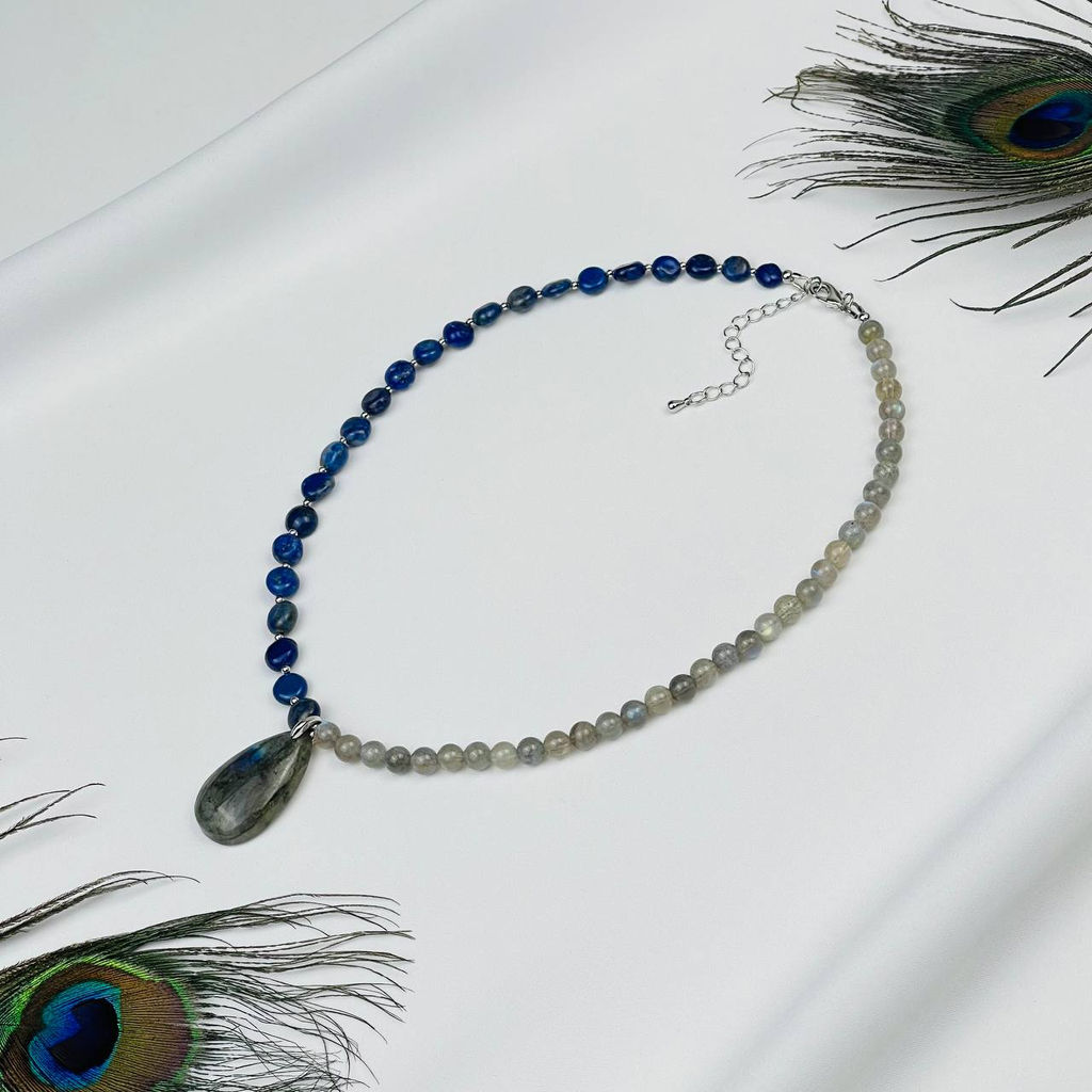 • Колье из Содалита,Жемчуга и Лазурта 39 см +